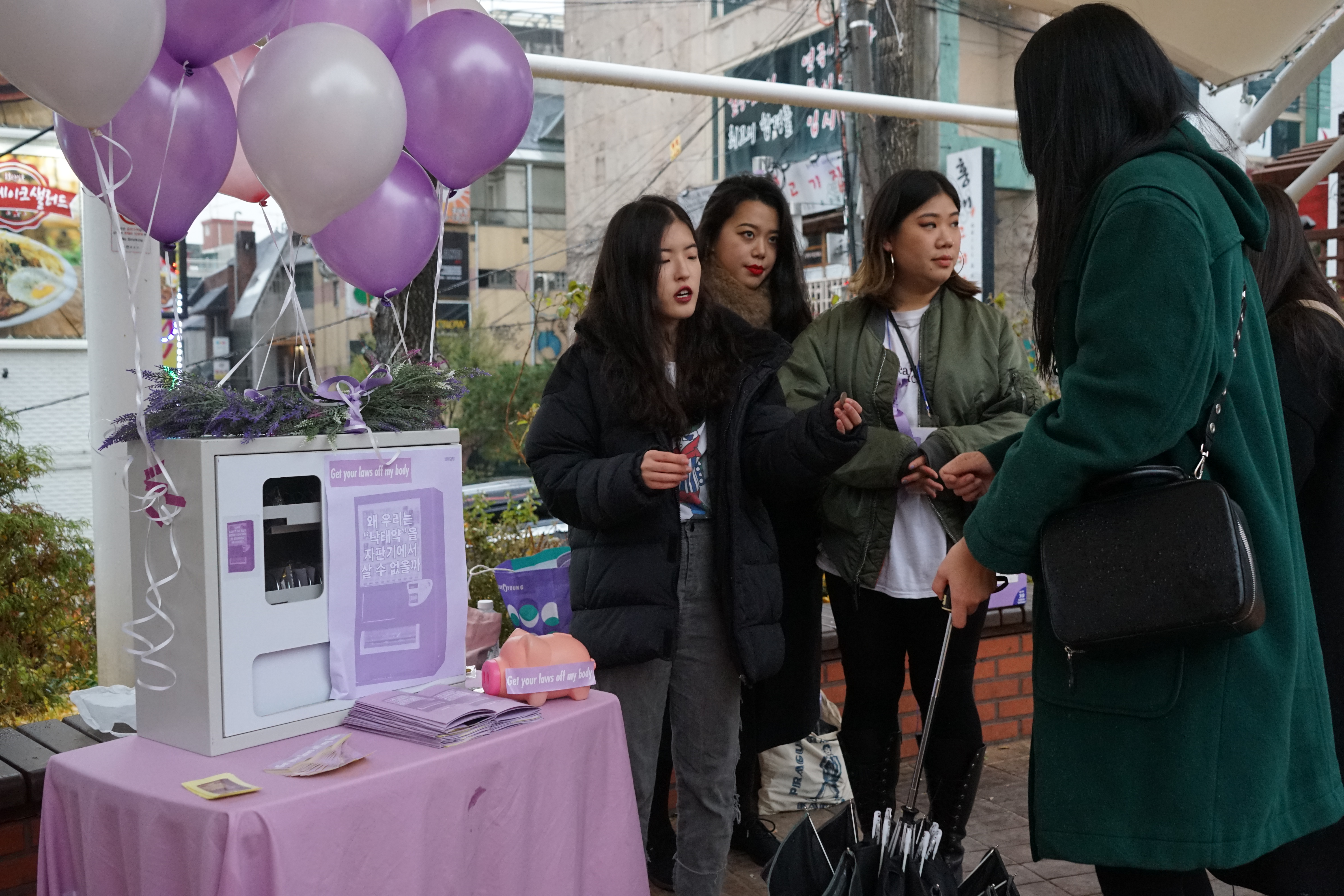 형법상 “낙태죄”를 폐지하고 약물을 통한 인공임신중단법을 알리기 위 퍼포먼스로 홍익대학교 앞 놀이터에 ‘미프진 자판기’를 설치했다.